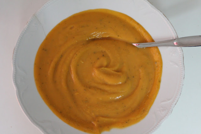Aurinkoisen kevään aurinkoinen keitto. Tykkäsin tästä tosi paljon, aika tulista mutta ei liikaa. Jälkkäriksi Ameriikan tuliaisina saatuja Hershey's suklaita, nam!